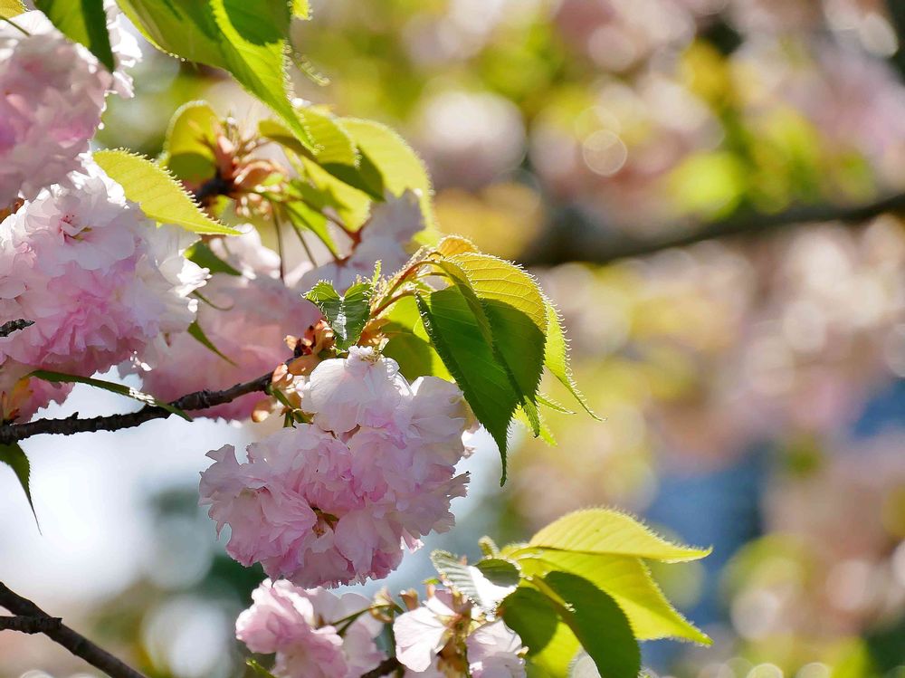 八重桜、満開キラキラ(4月11日撮影)