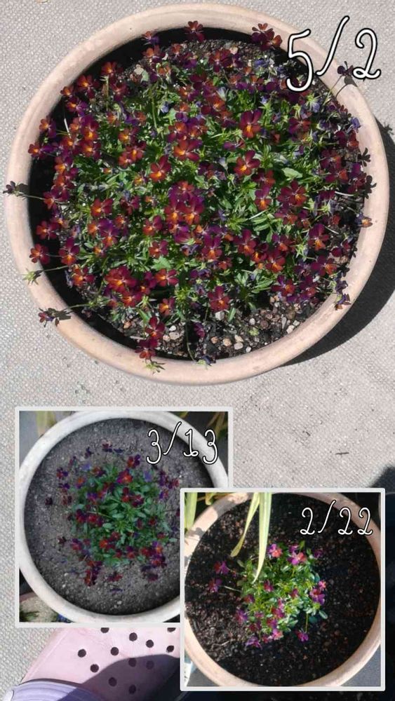2/7に苗を植えた、小さいビオラがずいぶん広がりました ヽ(^。^)ノ