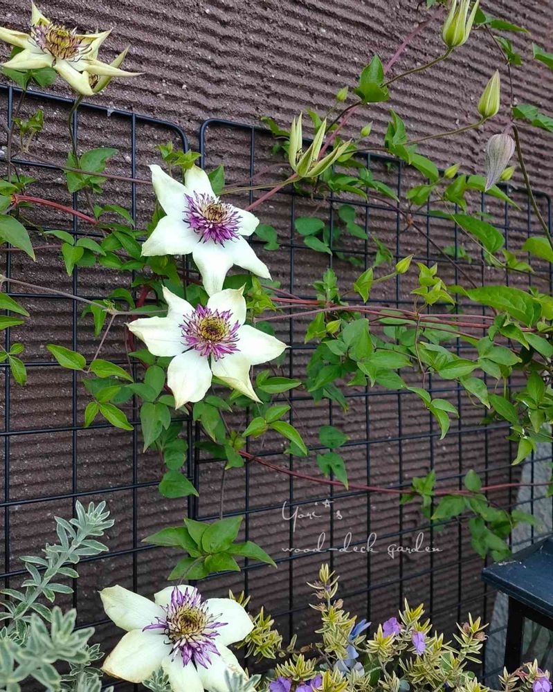 このモデルさん達はウチの中ではお行儀が良いクレマさんなの。こっちへ行ってね〜と少し誘引してあげたら勝手にハイ🌿ハイ🌿〜って☺️💓