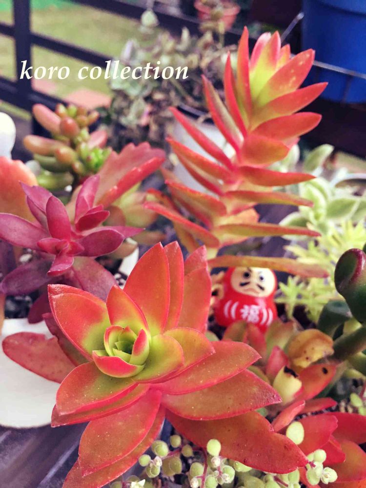 (*´∇`*)オツカレサマー 寄せ植えの子は凄く紅葉してるの〰️ナンデカナ•́ω•̀)? 赤くて綺麗だからいーんだけどっ!ダルマんも紅葉〰️🤣🤣🤣