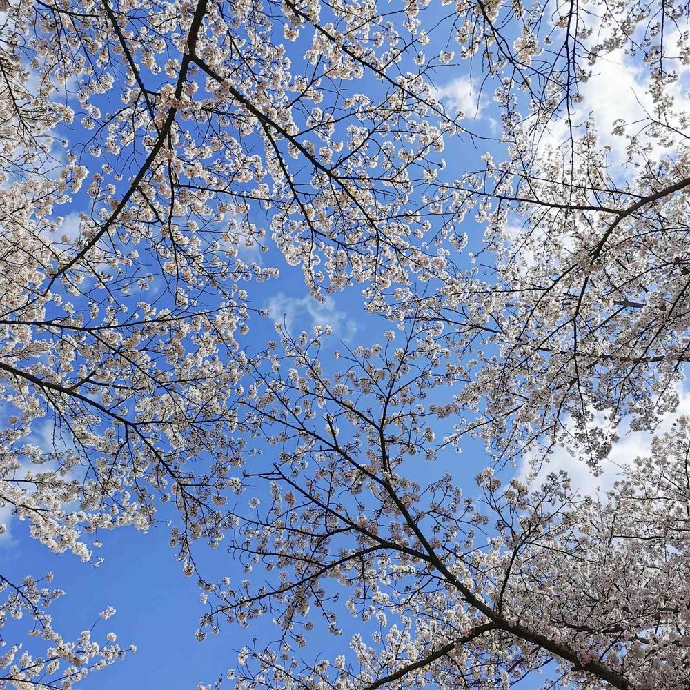 自分の真上を見上げたら、桜と青空が綺麗だったのでスマホで切り取ってみました📱✨