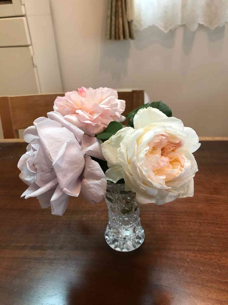 雨降りの前に摘んだ庭のバラ。