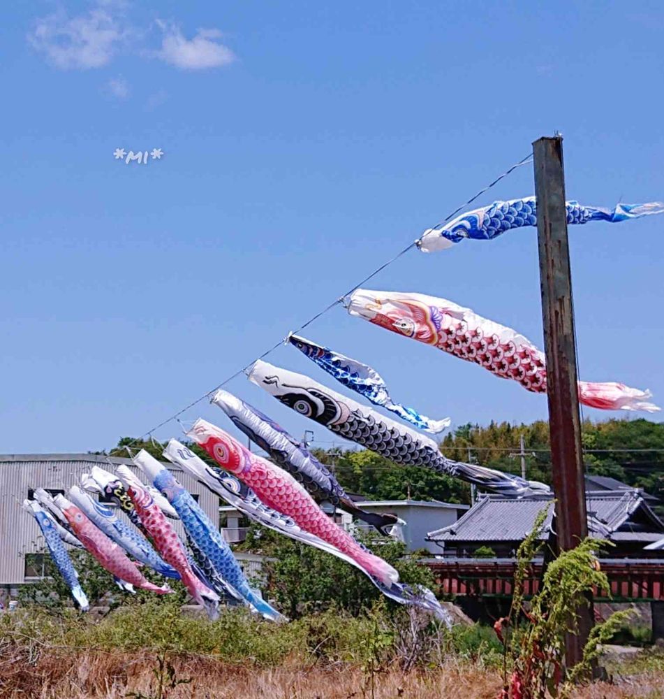 昨日小さな川の上を鯉のぼりが風に揺られて泳いでいました🎏