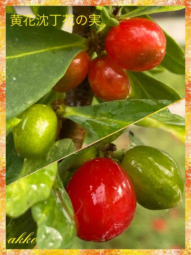 変わった沈丁花さん、黄色い花を赤く変身して、しかもさくらんぼみたい🍒