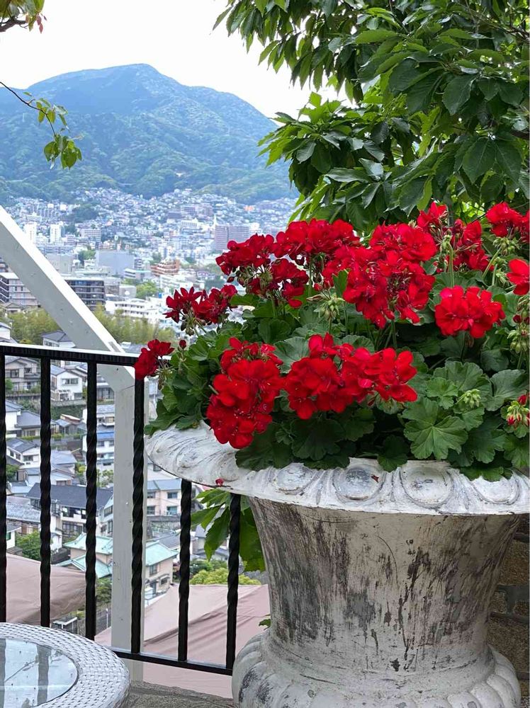 長崎また行って見たいです🌺庭園のゼラニウムの赤が緑に映えて美しいですね😀