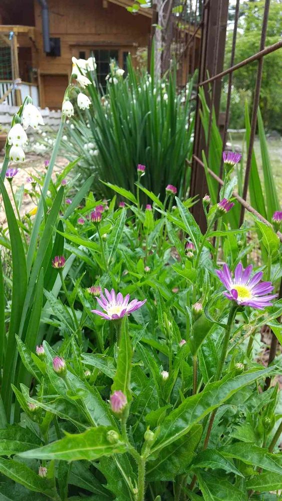 ミヤコワスレと、まだ綺麗に咲いてくれているスズランスイセン🌼🌼😊