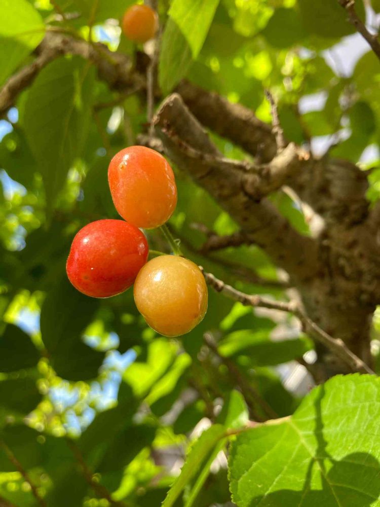 通年なら木に鳥よけのためネットをかけるのですが、今年は実なりがいつもよりも少なくて、ネットをかけなくても鳥もまだ気がついていないようです。