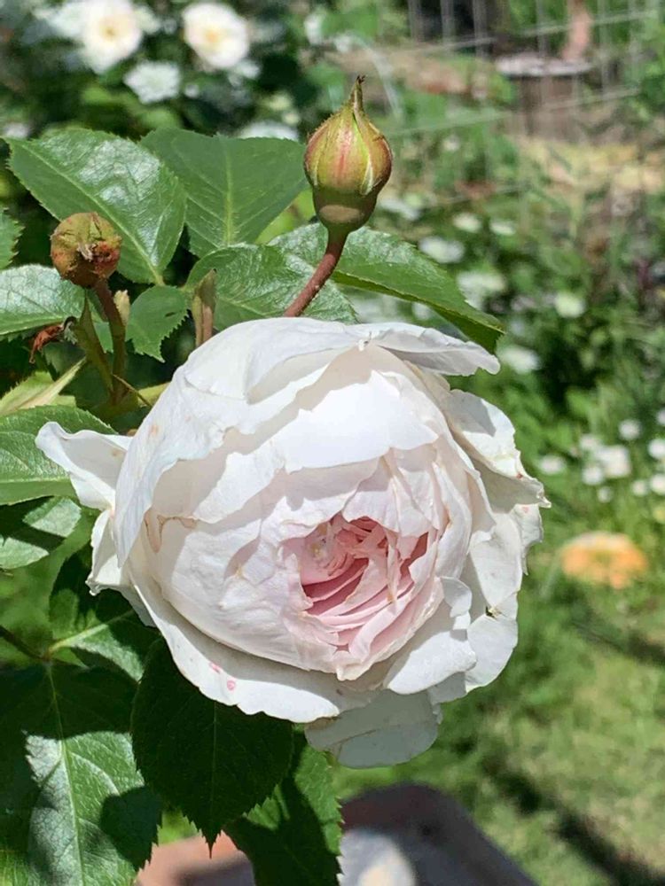 おはよう御座います😃この間コメント頂いた、葉っぱがギザギザの薔薇、翌日確認しましたら、やはり台木から出て居ました😨イングリッシュの赤い子でしたが…違う子が咲くのでは🤣有難う御座います。そしてこの子は、どんな感じですかぁ💓昨日、ジャスミーナと迷い、ジャスミーナを買いましたが…この子も、気になりました😊