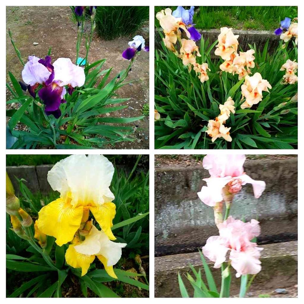 散歩の道すがら川沿いに色とりどりのジャーマンアイリスが咲いてました💗💙🤝💛