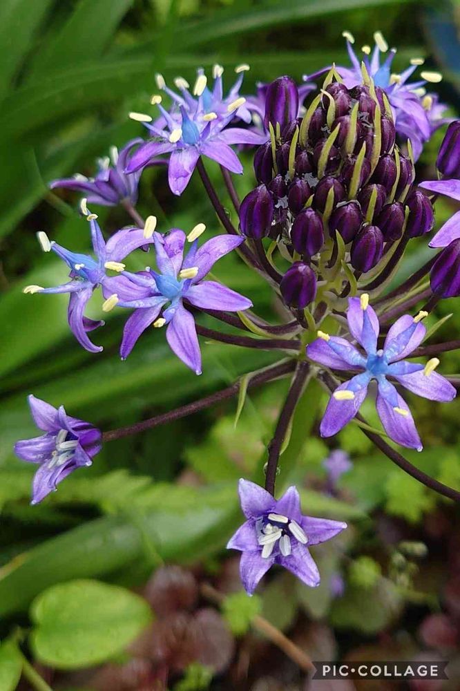 シラーペルビアナようやく咲いていました。昨夜の雨粒に濡れて綺麗です😃✨💙✨💜✨