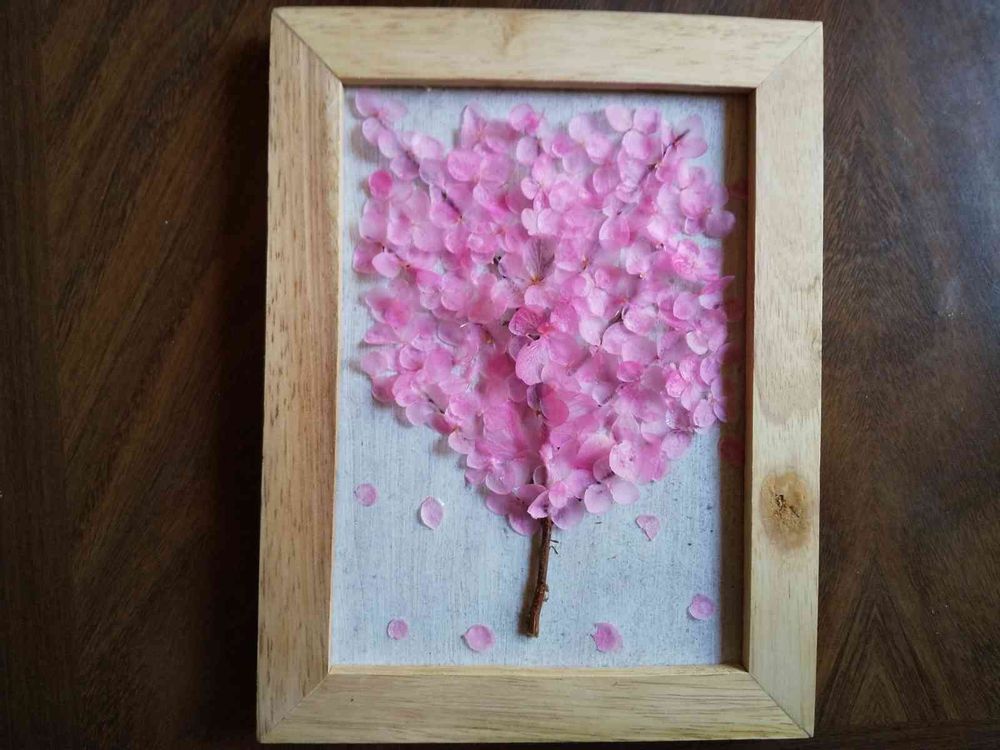 アナベルを漂白し、グリセリン&プリンターインクで着色し、桜をイメージして作りました〜😁