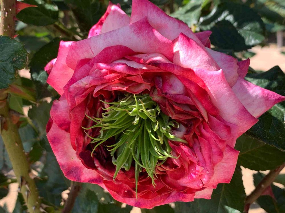 一輪だけ咲いていて他は蕾なので、品種なのか、突然変異なのか?確認できませんでした。