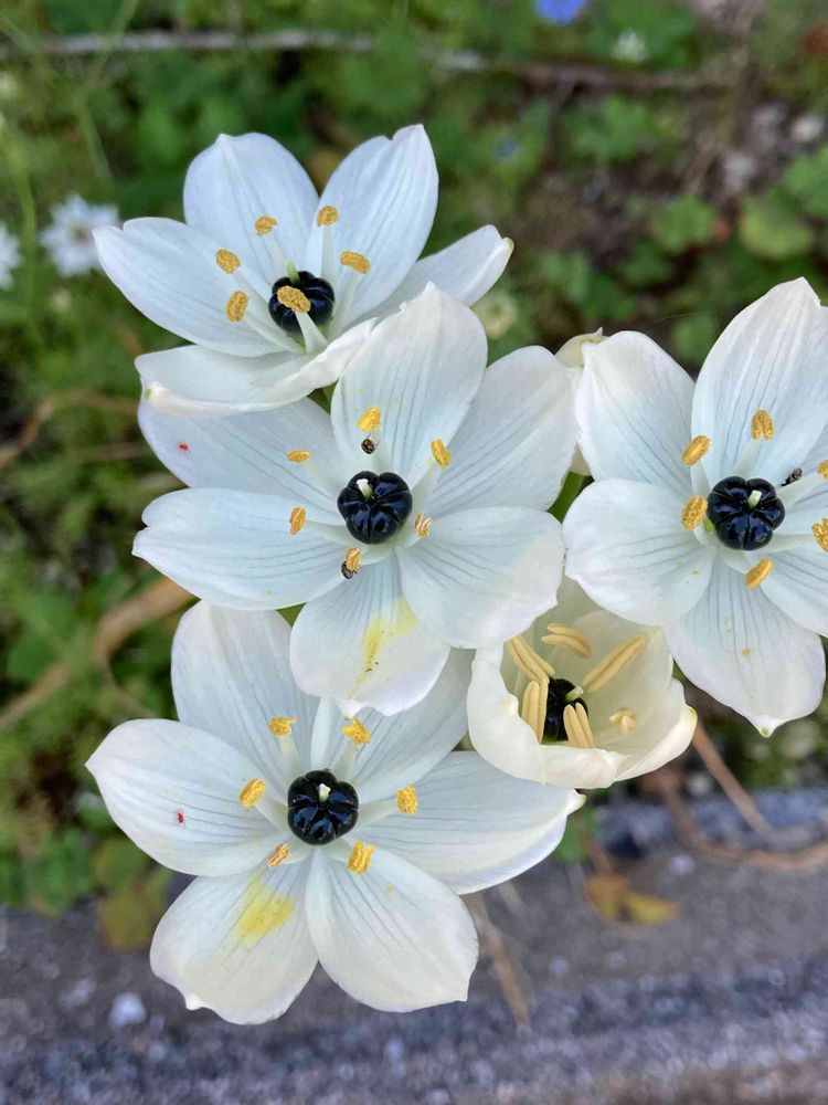 黒い瞳の真っ白な6弁の花びら🎶可愛いですね💐