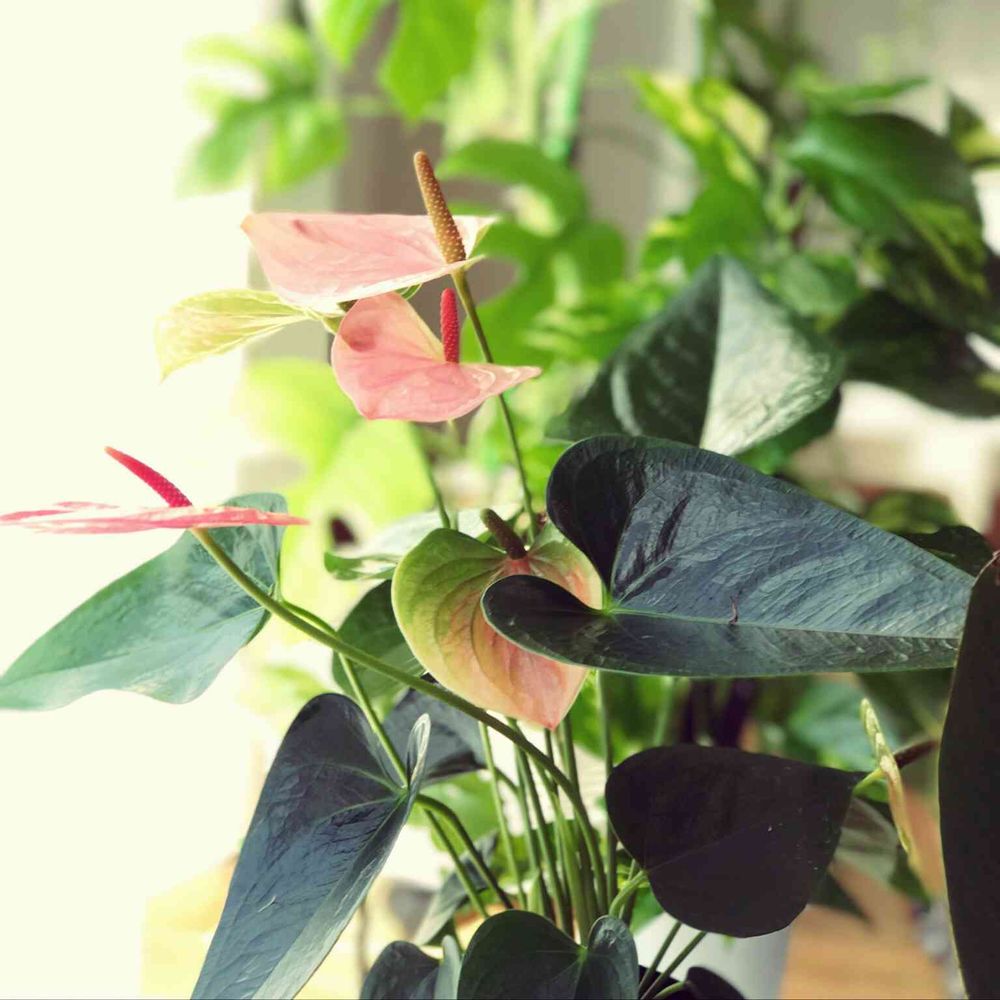 こちらの植物、、、アンスリウムとお名前教えていただきました💕これで育て方を調べることができます。