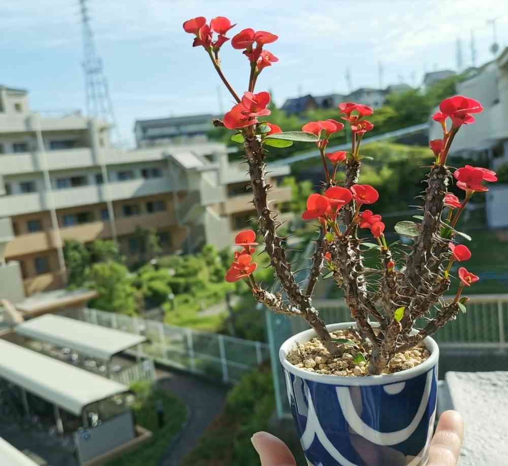 盆栽のようでもあり、厳つい塊根のようでもあり、それでいて一年中漫画チックに可愛いお花を付けてくれて、その名も「花キリン」💕💕💕