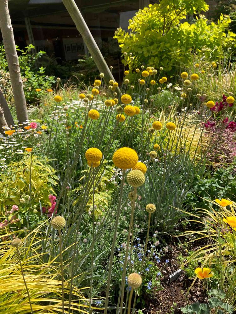 2〜3センチ大の丸い黄色の花が群生してて、可愛いすぎました😍