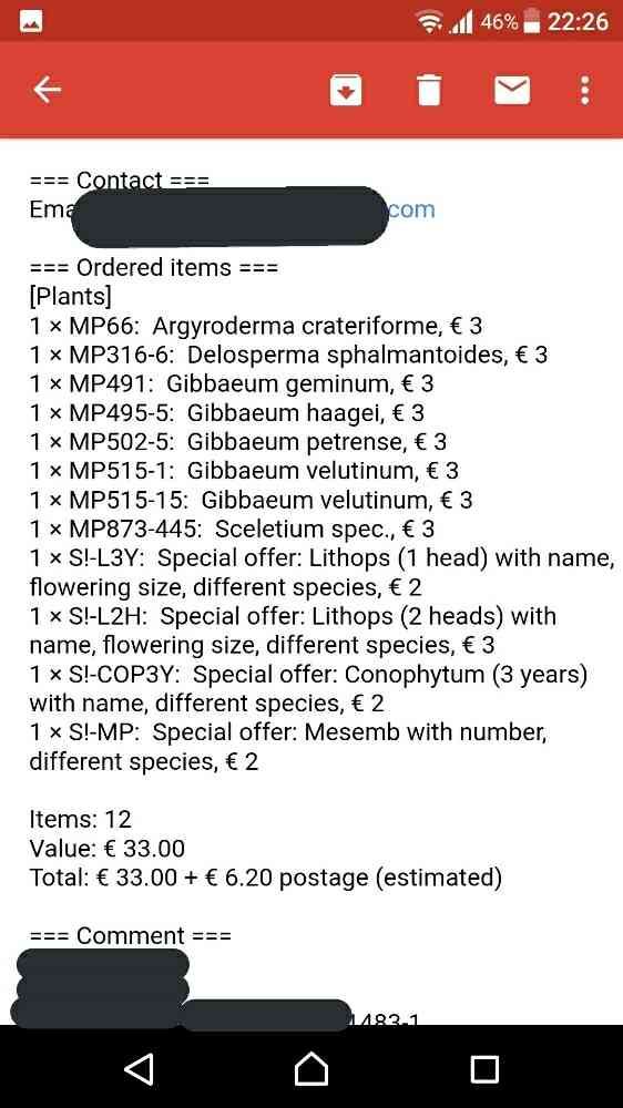 近所にメセン農場もないし、日本で認知度需要のない種類は海外から買ってくるしかない………