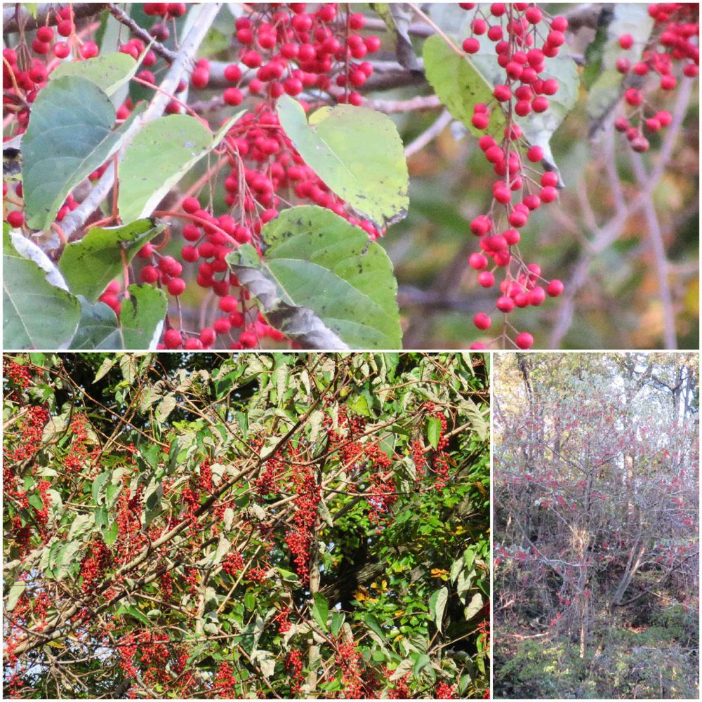 山里のふもとにブドウのように垂れ下がった赤い実を沢山つけた高木がありました。