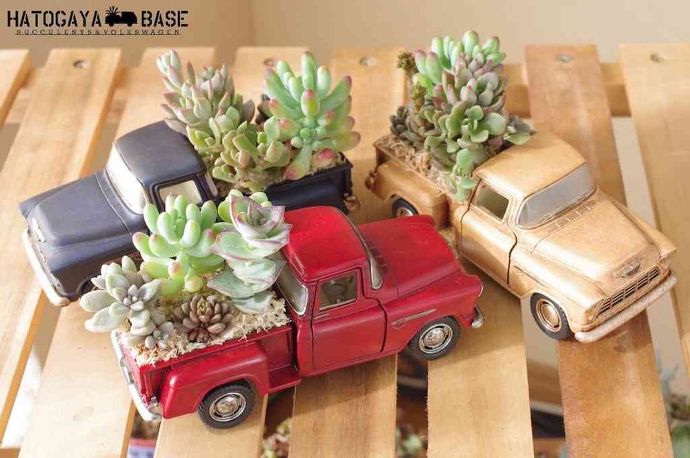多肉植物を寄せ植えしたミニカーのショップです。 主にフォルクスワーゲンのミニカーをベースにしています。 鳩ヶ谷ベースではミニカーにヴィンテージ加工を施し、多肉植物を寄せ植えして出荷しております。 http://hatogaya.base.ec/
