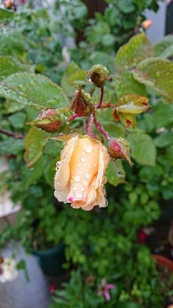 雨上がりの今朝のウインドソングさんです。チョッと強い雨でした。お昼にはしっかり咲きましたよ。蕾も沢山❗。楽しみです❣️。