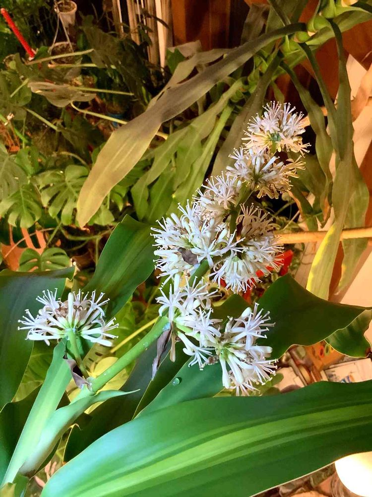 いい香りがすると思ったら、幸福の木の花が咲いてました。