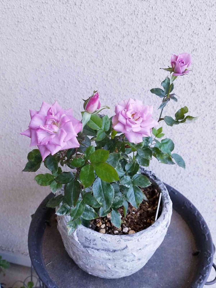 お気に入りの紫のミニバラ、コルダナが咲きました🌹