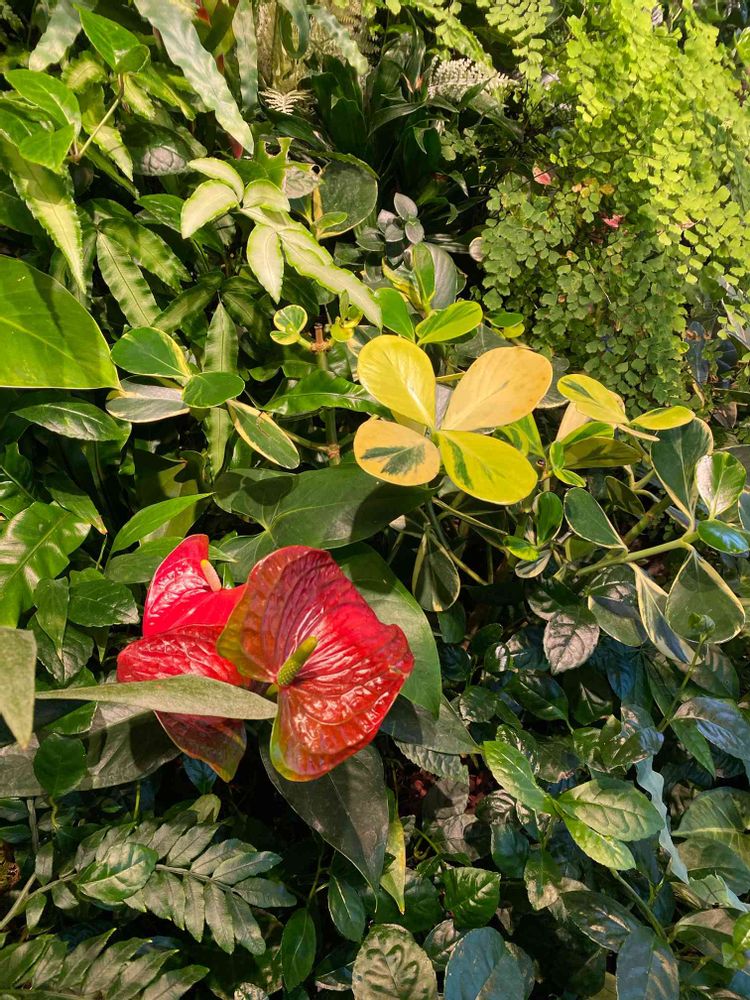 三原庭園のバスルームの隣には、壁面いっぱいのトロピカルフラワーにワイルドフラワー🍀