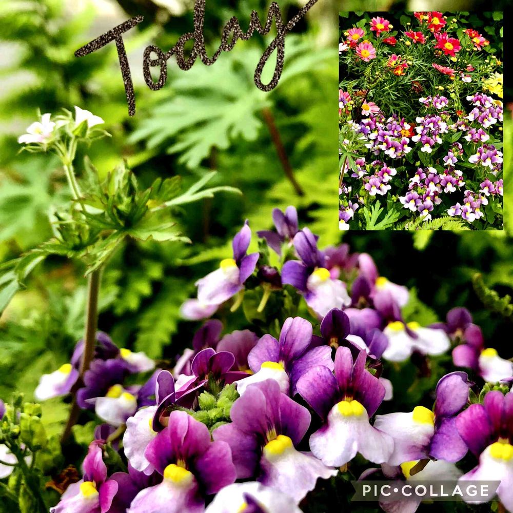 花言葉は包容力❣️ネメシアさんはどんなお花とも仲良しね🥰アメリカフウロさんが横で穏やか〜に咲いてます(#^.^#)