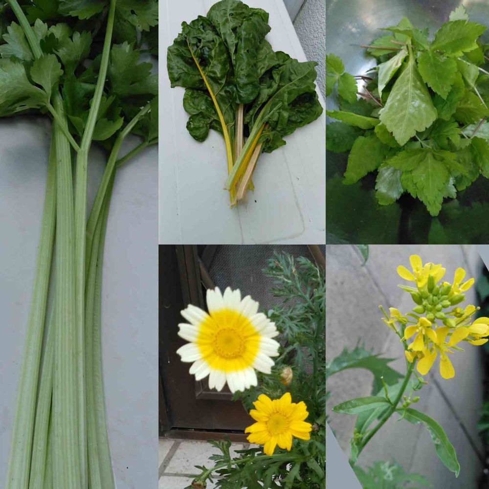 天の川さんの小さな庭,セロリ,春菊のお花の投稿画像