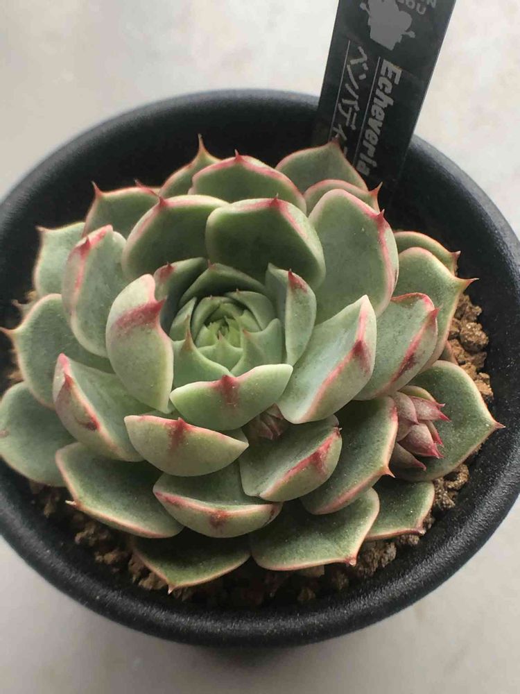 大和錦×静夜の交配種のようですが、ロゼットが綺麗で、爪が赤く、子株も出て来ました👍🙂