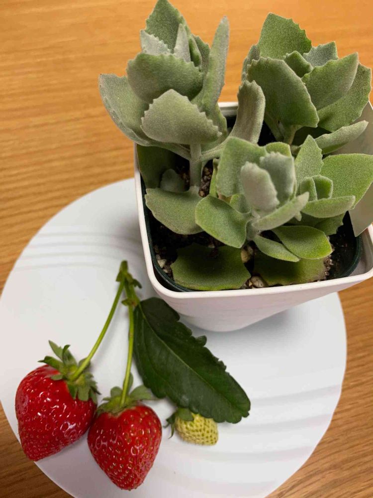 イチゴ狩りさせていただいた苺🍓と今日、勝ったばかりの新入り多肉ちゃん