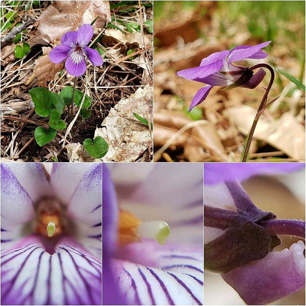 葉をめくると切れ込みの深い托葉が現れて、タチツボスミレの仲間であることが分かりました😌花の紫が濃いこと、花の中央部の白さが際立つこと、このふたつの特徴を持つところを見てニオイタチツボスミレであると思い、花の香りを確かめましたら淡い香気がありました。