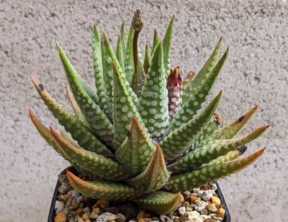 「瑞鶴」には星点はありません。「星瑞鶴」は点がもっと小さく、「マリアッチ」は瑞鶴の変種ですが、稜と星点が盛り上がっています。