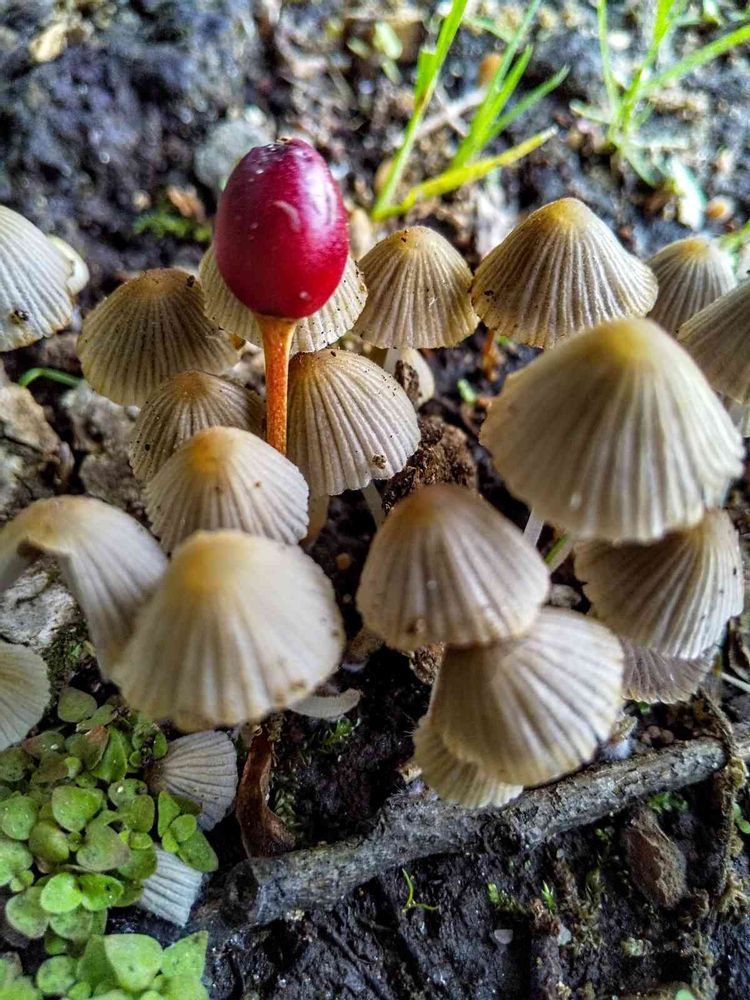 近くの公園に行ったら直ぐに可愛いキノコの群生に遭遇。