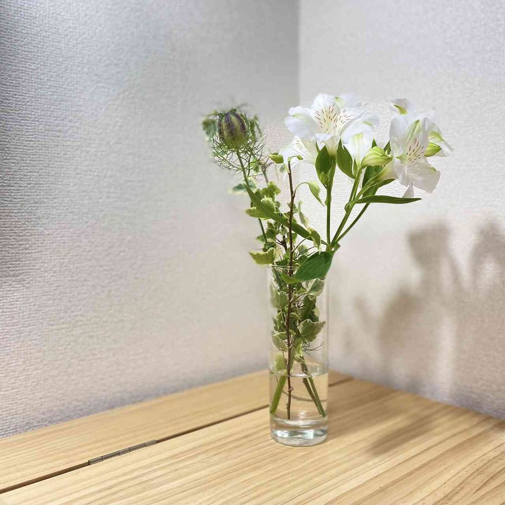 母の日が近いからカーネーションやピンク系のお花が多かったみたいだけど、悩んだ結果、白のお花を選びました。