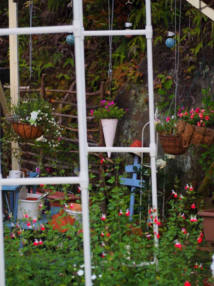春の庭、賑やかになってきました🥰自作のパーゴラもまだまだ飾る余地あり💓