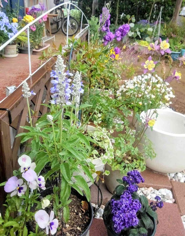 白いスチールのトレリスは家の👤が溶接して作ってくれました‼️