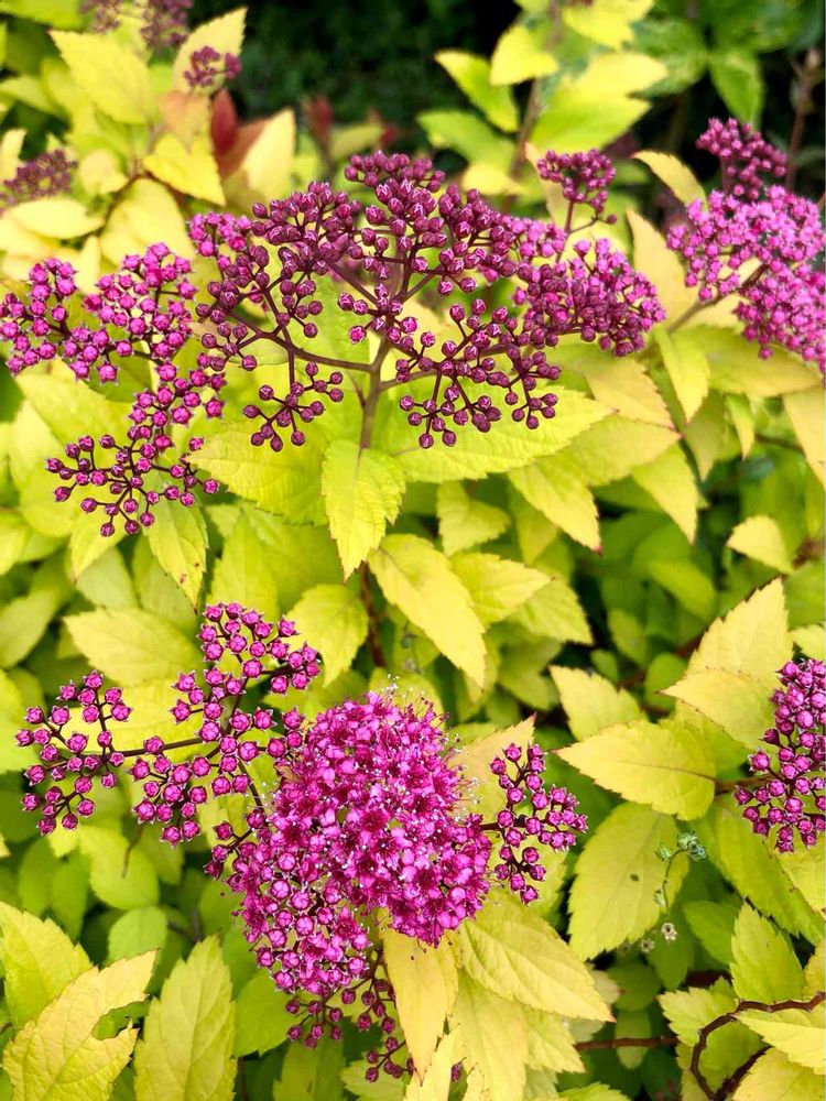 そうですね😅葉っぱのゴールド色?ライム色?が鮮やかなので赤紫の蕾が映えますよね🥰👍普通の緑葉のシモツケさんはまだ蕾だけでした💕開花はもう少し先のようですが楽しみです🤗🎶