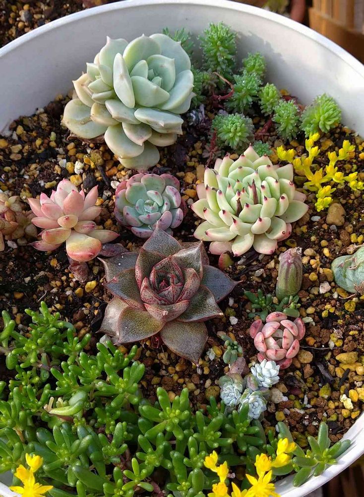 一番上から右回りで、静夜、原種ザラコーザ、七宝樹、白雪ミセバヤ、大和錦、ミレグレ