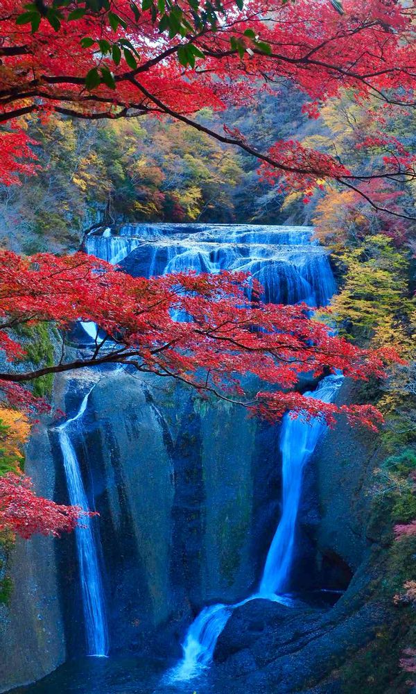 滝の青白さと💙紅葉の赤🍁がマッチして😲