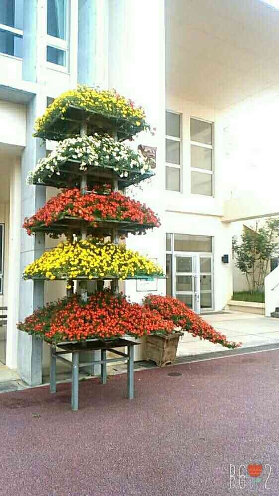 制作した五重塔を去年の農業祭の後、正面玄関前に移動させた時の写真です。