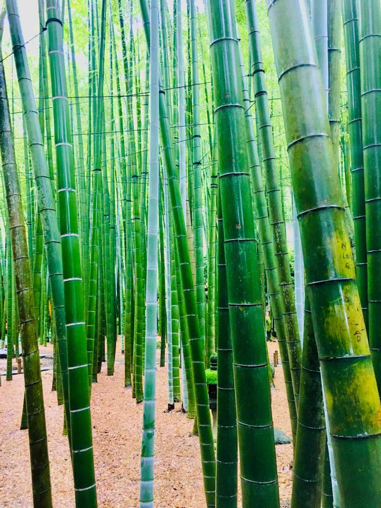 竹林の地面はどうなってるんですか?綺麗に管理されてますね〜🖼竹が上の方で結んであるね♻️倒れないようになのかな?