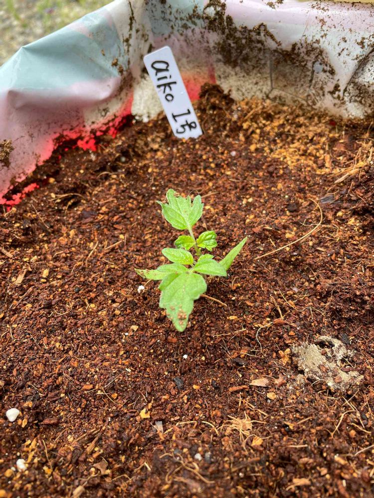 袋にそのまま植えつけられる土に植え付けられたアイコの生育日記