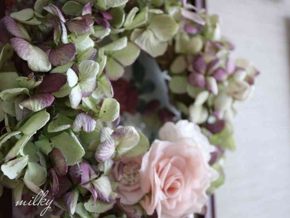 とても素敵な色合いのドライのアジサイリースをいただきました。