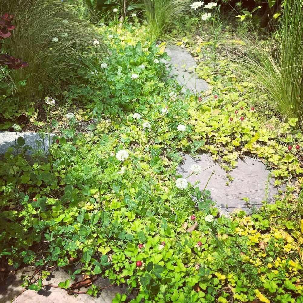 昨年、かわいいからと放置してたら増えまくったヘビイチゴ。白詰草も除去できず放置。まぁ、ナチュラルガーデンてことで…