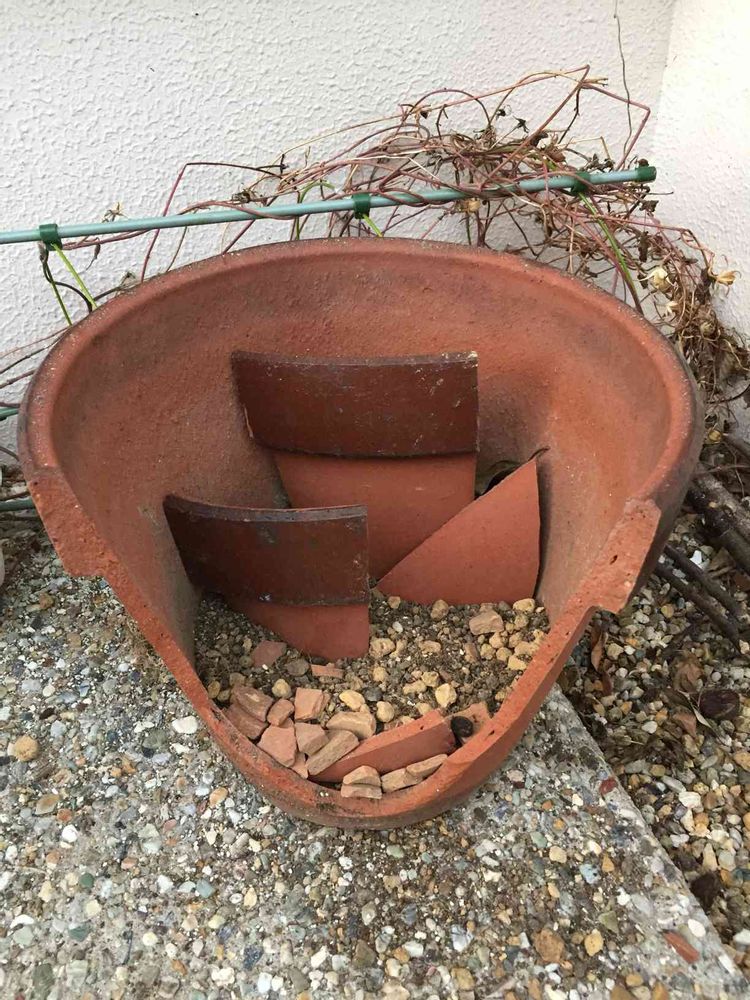 割れてしまった鉢をおしゃれに使っている方をまねてみようと( ˊ̱˂˃ˋ̱ )