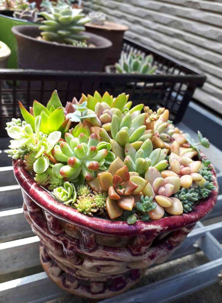 多肉との出会いは娘からの プレゼント🎁✨🌱✨ 少しずつ増えてきたので寄せ植え にも挑戦中💪 育てる楽しさ(ちょっと大変💦) 作る楽しさ💓 毎日、癒されてます😌