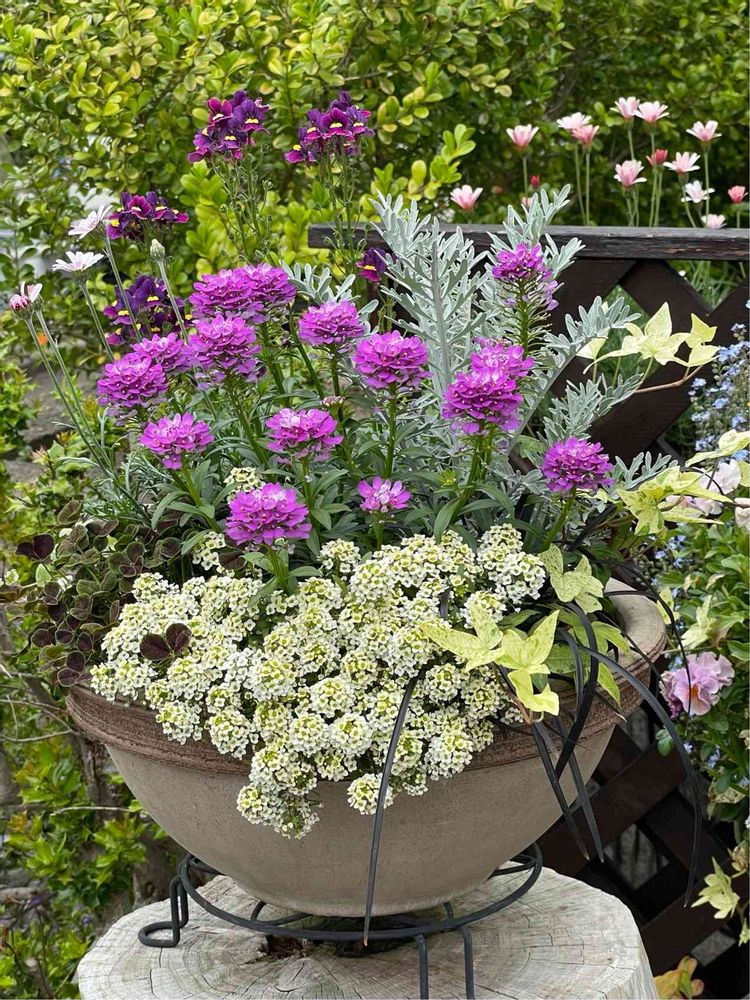 真ん中の紫のお花はイベリスクィーンアメジスト💜白いイベリスより大きくてしっかりとした茎、メインのお花になってます❣️
