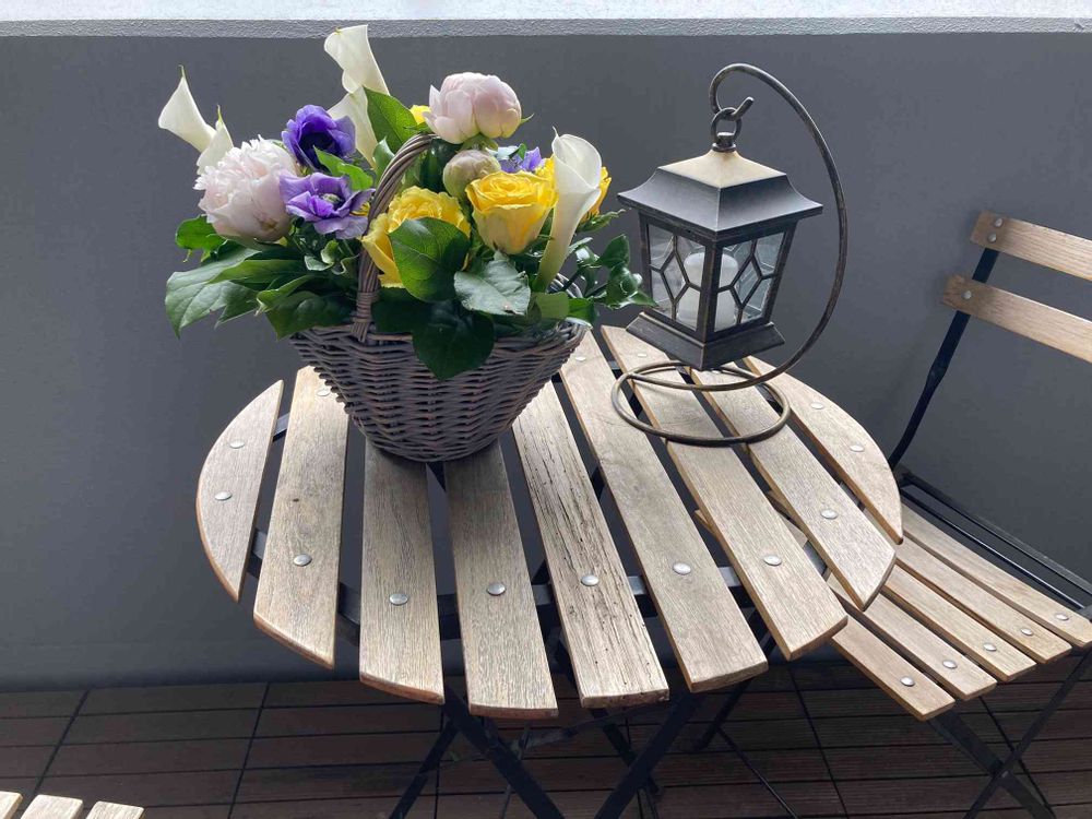 おちょやんのマネして花籠。でも、選んだお花がおちょやんから遠かった😆
