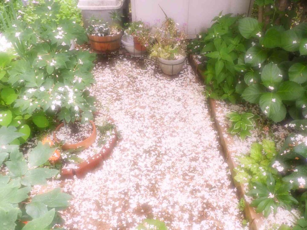 雪が積もりました❄️ではなくオオデマリが散り始めました。